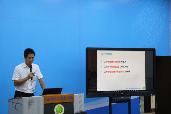 8月28-29日,由外语系和教师教学能力发展中心联合举办的大学英语集体备课会成功举办。在开幕式上,教师教学能力发展中心李海华副主任全面介绍了教师教学能力发展中心的功能和中心成立至今在教师教学能力培养方面所做的工作,外语系田志强副主任向全体教师汇报了我校正在进行的大学英语教学改革工作的整体情况和进展,并强调了本次教学改革的重要性和必要性。他指出大学英语教学改革意义深远,它不仅促进了公共外语教师教学水平的提升,也关系到全校每年五千余名学生的发展和成长。此次大学英语集体备课会是外语系第一次有组织、有计划的集体备课研讨活动,也是我校大学英语改革中的一项重要活动,拉开了我校2014级新生进校后全面实施大学英语教学改革工作的序幕。