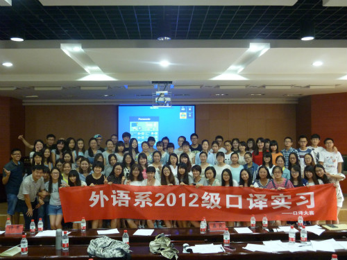 为实现外语专业培养目标,培养外语复合型口译人才,将学生在学校课堂所学的知识与具体社会实践任务相结合,7月2日、7月6日至7月10日,我系英语专业2012级86名学生在杨晓峰、巩存芳等老师的带领下,开展了为期五天的口译实习。