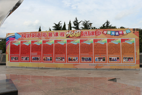 本次大学英语教学改革由教务处和外语系共同推进,旨在为学生个性化培养提供多样化的外语课程,拓宽学生视野,进而提高我校学生的外语水平,促进学校国际化进程。经过前期调研和论证,本学期拟开设《西方文明史》、《求职英语》、《媒体英语视听》、《跨文化交际》、《英语应用文写作》、《资刊阅读》、《口语与演讲》、《雅思英语》、《交际能力与职业发展》、《中国文化概况》等10门课程。暑假之前,课程组已经完成了课程教学质量标准的撰写及修改完善工作,每门课程按照课程计划制作了多媒体课件。为了帮助学生充分了解大学英语拓展课并指导学生选课,外语系制作了详细的课程简介,并在校园的醒目位置放置了课程简介宣传板供学生了解每门课程。此外,每个课程组还制作了课程宣讲视频,课程宣讲视频已与本学期学生选课之前上传至教务处网站和西北农林科技大学微信平台。